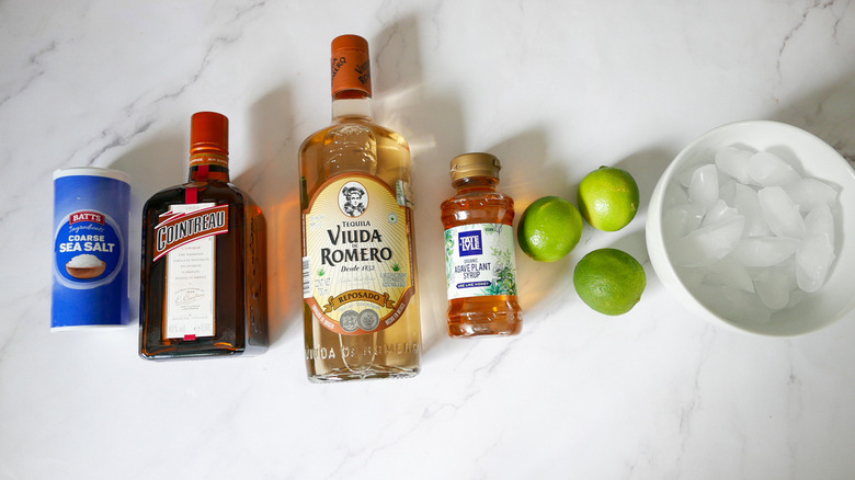 To make this margarita, you'll need tequila, lime juice (fresh is best!), agave syrup, and Cointreau. Dalton tells us that while "Cointreau has a smoother, more intense flavor" than triple sec, the latter ingredient can be used in its stead if that's what you have on hand.