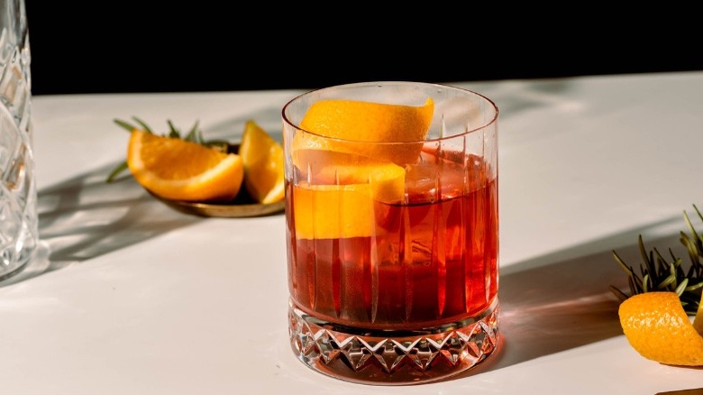 To add a little pizazz to your cocktail, add an orange peel. McGlinn also suggests a few more options to make your drink worthy of the gram. "You can get creative with Negroni garnishes. You can peel a thin strip of orange with a channel knife, or cut whole orange slices for an especially orange flavored Negroni," McGlinn Notes. "You can also switch the citrus to lemon or grapefruit for a slightly different flavor!"
