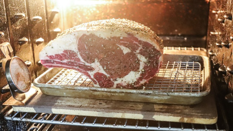 Recipe developer Taylor Murray brings us this mouth-watering recipe for prime rib roast which makes the ultimate centerpiece of any special occasion or holiday feast. The classic dish is known for its tender and juicy meat, encrusted with a flavorful spice rub that is sure to satisfy. "When I have to cook for a crowd, I prefer to not have to hang out in the kitchen all day endlessly basting," says Murray. "That's why I like to make this prime rib. I use a meat thermometer with a probe set to an alarm so I can walk away from the kitchen until the roast is almost ready." If you have an important or special dinner in your future and you're looking for a killer centerpiece, but don't want to spend all day in the kitchen, read on for our slow-roasted rib roast recipe.