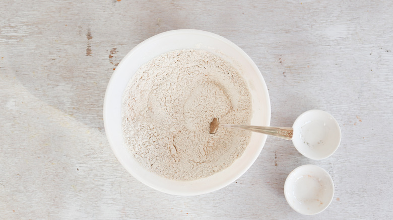If you don't have self-rising flour, you can easily throw together your own with just a few simple ingredients. Combine 2 cups of flour with 1 tablespoon of baking powder, and you've got self-rising flour! Just make sure to whisk them together well.