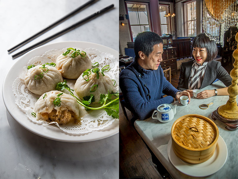 Hot pork buns; owners Xian Zhang and Yiming Wang enjoy a cup of tea.
