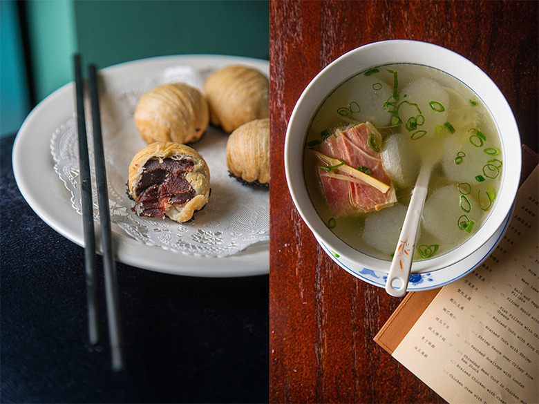 Red bean puffs are $12, worth the price tag of a plated dessert when you consider the amount of work it takes to present the delicate pastries with so many even, distinct layers wrapped around a sweet red-bean core.