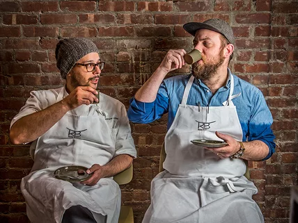 Rose Bakery, a new outpost of the Parisian patissiere located inside the Dover Street Market fashion collective, serves simple but stylish fare. Here, pastry chef Matthew Lodes and manager Scott Boggs sip espresso.