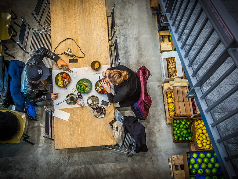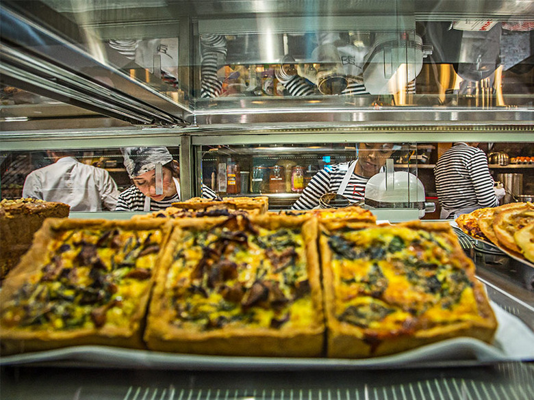 But if you're thinking of trying on that Saint Laurent dress after lunch, let us suggest the bakery's signature assiette de legumes, a vegetable plate composed of items like grated carrot salad, shaved fennel with avocado and grapefruit, and rutabaga and chard gratin ($13 for a choice of three salads; $17 for five).