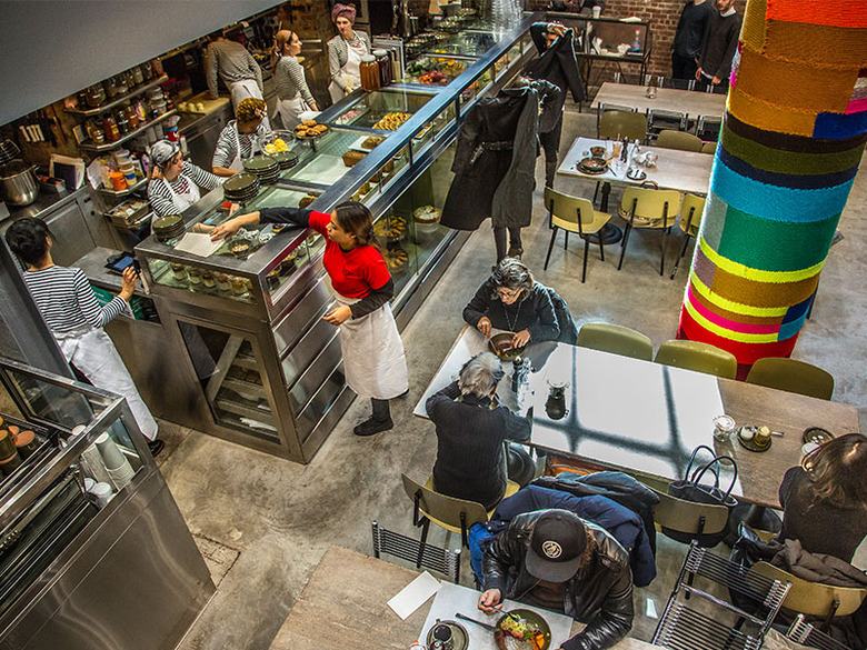 So what better way to feed the smartly dressed set than with pizettes and pastries from an offshoot of a famous Parisian pâtisserie? More modern than the original, Rose Bakery has style in spades thanks to a floor-to-ceiling column dressed in a multicolored patchwork knit by artist Magda Sayeg.