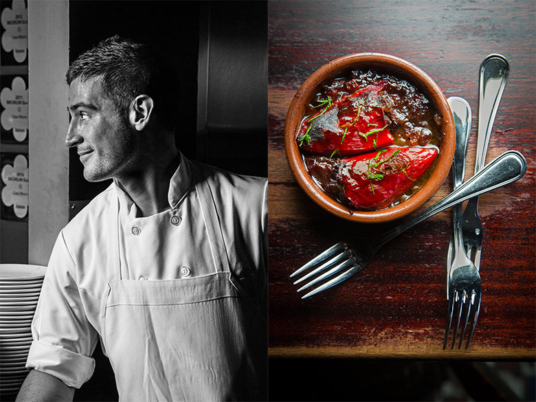 Casa Mono' chef Anthony Sasso; a plate of peppers stuffed with oxtail.