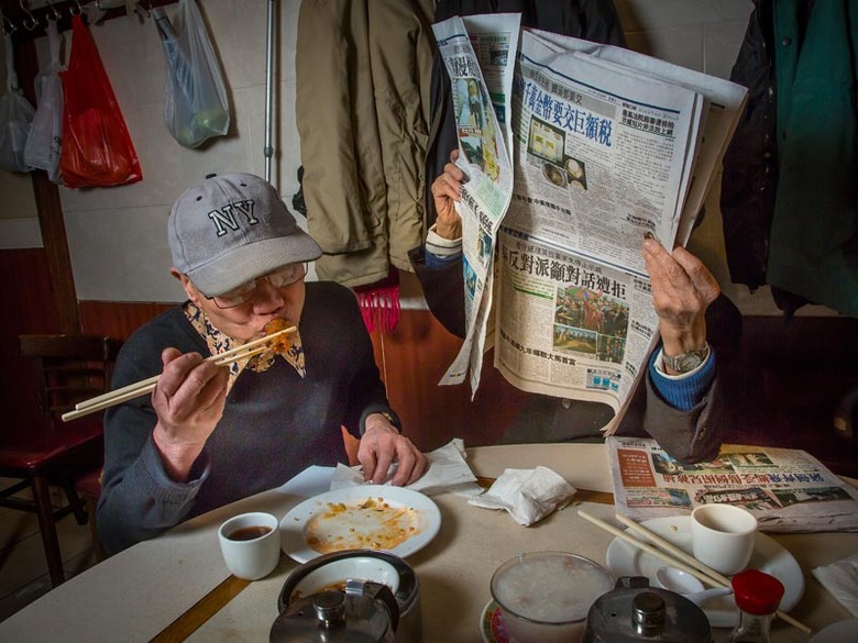 Hop Shing's regulars, sharing dim sum and reading the paper.