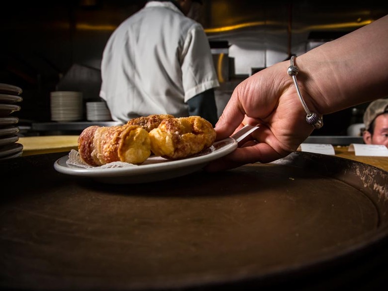 Shrimp and bacon rolls ($4 for three) ready to be served at Nom Wah Tea Parlor.