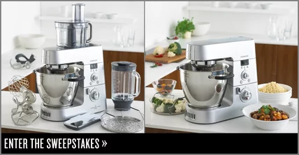 Enter to win Kenwood's innovative Cooking Chef Kitchen Machine (retail $1,999). It's the first-ever total mixing machine that cooks: First, it preps your meal with its food processor, ThermoResist glass blender and stainless steel bowl tools, then it heats with its induction cooking system.