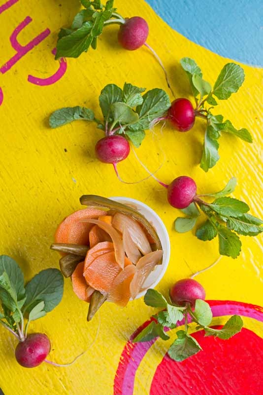 Gorgeous baby radishes (from Rockaway Urban Farm) and pickles.