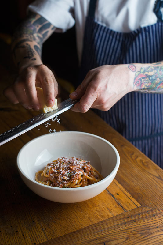 You could go at a bowl of bucatini solo, or you could order a few pasta dishes and share.