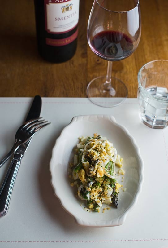It's mostly about the pasta here, but it's not all about the pasta. So start with a couple of antipasti, like the tiny plate of perfect grilled asparagus with mashed-up soft-boiled egg and gremolata ($10). And clams stuffed and baked with tomato sauce and lemony breadcrumbs ($12).