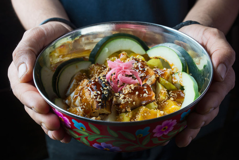 Yes, there's a tom yum on the menu, but Mehta says he'll be nixing it soon, and anyway you're not here for the tom yum. Ignore it! Focus instead on what those roti cooks are getting up to in the front of the open kitchen. They stretch the soft dough out until it's so thin you can see right through it, then fold it with drips of clarified butter and press the flatbread to the hot metal. Each one's made to order. It's beautiful.