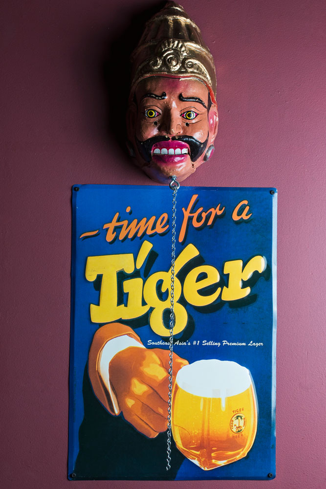 In addition to hawker-themed signage, the restaurant is decorated with vintage beer signs and old comic books. [Photo: Tasting Table]