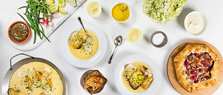 We're going to skip the hours it takes to make bouillabaisse and make the silky fish stew bourride (see the recipe). We'll place a slice of toast in the bottom of each bowl before ladling in aioli-thickened broth, chunks of monkfish and fingerling potatoes. We'll sprinkle each dish with Espelette pepper and torn parsley leaves. We'll do like they do on the Mediterranean coast, setting out some extra aioli on the side.