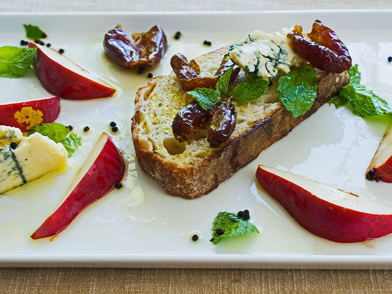 Bartlett pears are paired with sharp blue cheese, dates, mint and thick slabs of bread for an effortless starter (see the recipe).