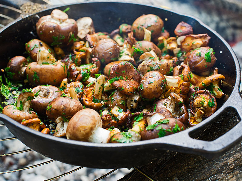 Mushrooms roasting over the fire.