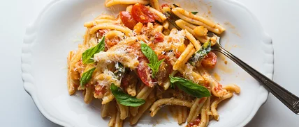 Toss in some almost-cooked pasta (Pasqualetto uses casarecce, a narrow, tubular breed similar to cavatelli, though you could easily opt for spaghetti or penne instead), give the pan an artful shake or two and plate. The finishing touches? More basil and a shower of powdery Grana Padano, which Pasqualetto prefers to the more traditional ricotta salata for its nutty flavor—a tweak even grandma would approve of.