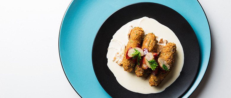 Cvapi (see the recipe) is another new Bronwyn dish with roots in Eastern Europe (Bosnia, to be exact) and some out-of-the-box elements that turn it into more of a mash-up. The name loosely translates to "finger sausages," but Wiechmann did a 180 and opted instead to make a vegetarian version, taking inspiration from Middle Eastern falafel.
