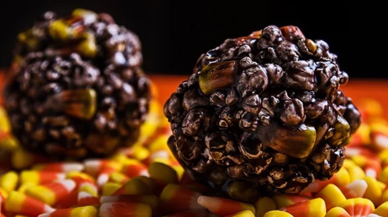 Candy Corn and Peanut Popcorn Balls