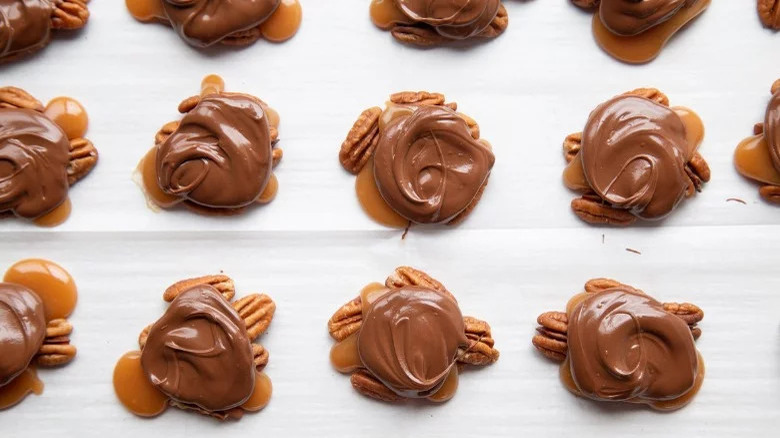 Perfect for the Halloween party set that has aged out of roaming the neighborhood asking for free candy, made with layers of chocolate, caramel, and pecans, you can be forgiven for thinking that chocolate turtles are a difficult dessert to make. But Tasting Table recipe developer Kate Shungu dispels that notion with her Chocolate Turtle recipe, which can be whipped up in under an hour.