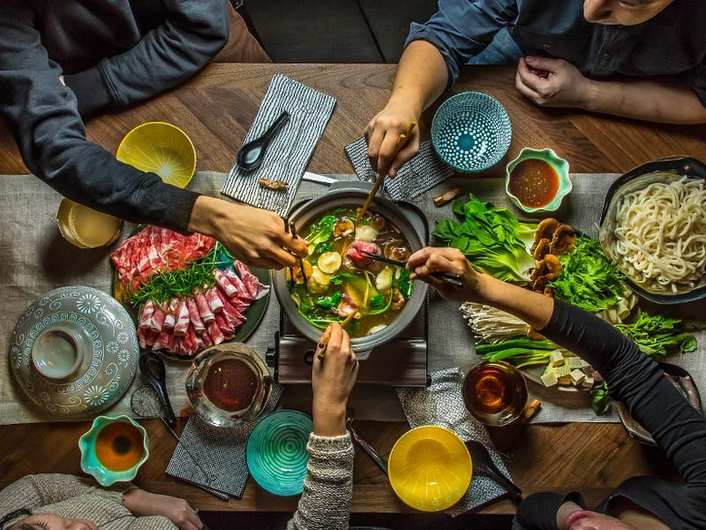 Simplify your hosting life by throwing a shabu shabu party. It's an ingenious Japanese feast where guests cook meats and vegetables tableside in one crock of hot, flavorful broth, then dunk it all into chile oil and a zippy blood orange sauce. See the recipe.