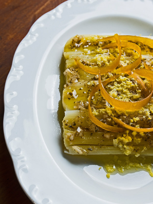 Grilled leeks with bottarga