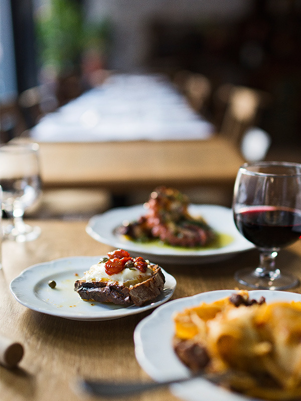 And when you step into the warm, cozy West Village restaurant, you may forget for a moment that you're in NYC: Save for the round, silver-topped tables and long marble bar, it feels like you're eating in someone's kitchen. A rustic wooden cabinet holds stacks of plates, and bowls of fruit and piles of bread are scattered about, not messily, but just in a way that makes you instantly comfortable.