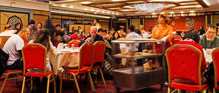 Jing Fong, Manhattan: Brace for a sprawling dim sum and banquet hall, complete with a private escalator, ginormous crystal chandeliers and an in-your-face gold dragon motif. The dim sum isn't necessarily the most innovative, but it's hot, fresh and, due to the enormousness of the dining room, turns over quickly.