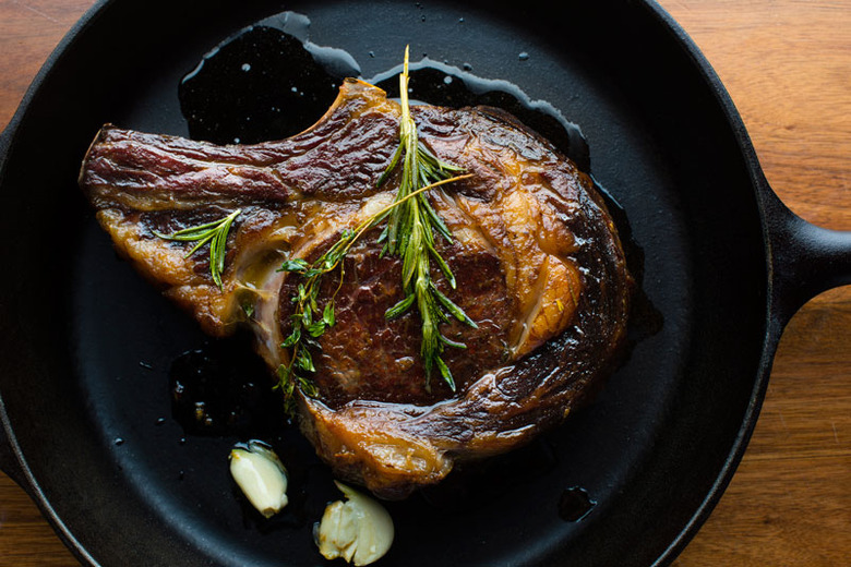 Another one to file under classics worth mastering: the rib eye. Have the right gear (cast-iron pan), prep work (salt, salt, salt) and patience (don't fuss with it, let it cook) at the ready, and you're rewarded with a perfectly cooked hunk of meat. Bonus points for a pat of bone marrow butter on top.