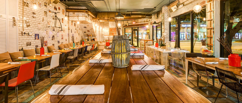 And eccentric this place is: The loft like open space may at first resemble an Ikea showroom, with mismatched color-blocked chairs and wood-topped tables adorned with orchids in orange and teal vases. The main wall, done in white subway tile, of course, is lined with a pillow-topped bench, fitted with a burlap-like material that's stamped with The Gang's logo—which you'll also spot on top of the open kitchen/bar counter.