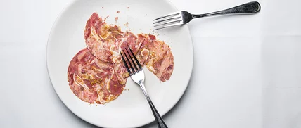 The coppa cotta, meanwhile, is made from one muscle drawn from a boneless pork shoulder that's brined for three weeks, seasoned heavily with cayenne, black pepper, salt and fennel seed, stuffed into a beef casing and gently poached. Those peppery flavors shine through in each slice.