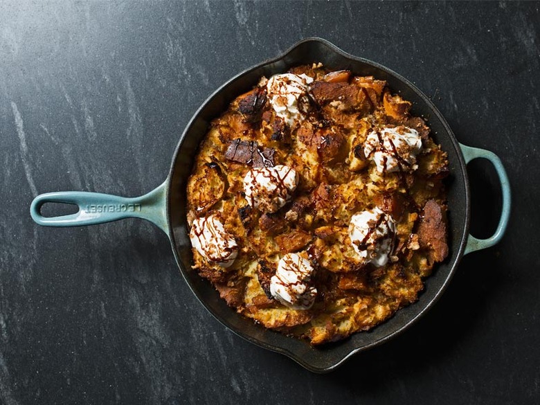Bread pudding and butternut squash are a match made in heaven. The squash caramelizes while baking, adding an unexpected sweet note to the egg, cream and milk-soaked bread treat.