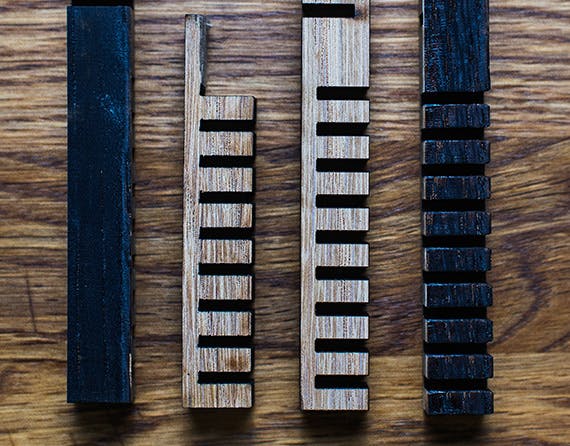 What's in the kit: One package includes two rectangular staves wrapped in paper. Horizontal notches are cut across the staves, resembling a comb.