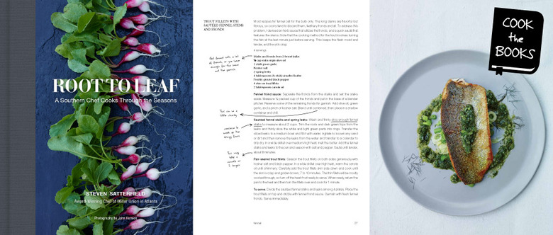 The recipes often have a Southern accent, and the book is organized by season, but what really motivates Satterfield—and what sets his cooking apart—is his root-to-leaf approach. More than just the culinary love child of the vegetable and nose-to-tail dining trends, root-to-leaf cooking is about making the most of everything that's harvested, including what would normally be considered scrap.