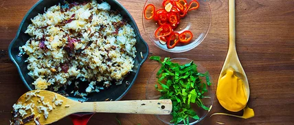 One of the best parts about rice is the crispy, burned clumps that get stuck on the bottom of the pot. Though it usually gets thrown out, fried rice puts the crunchy bits center stage. Round it out with yogurt, onions and quick-pickled chiles for this satisfying bowl.
