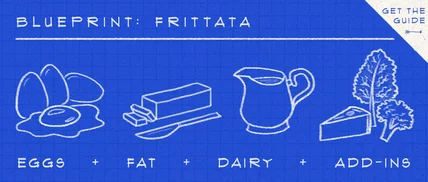 Follow the formula. No matter what you have in the fridge, the basic combination of 8 large eggs + 2 tablespoons fat + ⅓ cup dairy + add-ins can be your general guideline for a fluffy frittata.