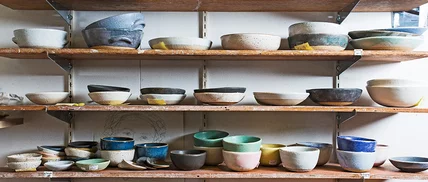 Noble never set out to work with the restaurant world. She's been in the same studio building for close to 30 years, making everything from decorative pottery that sold at Barneys and Bendel's to dramatic hanging sculptures more appropriate for gallery walls. But when a nearby pizza restaurant, Ignazio's, requested some custom plates about six years ago, Noble obliged, kicking off a new career avenue.