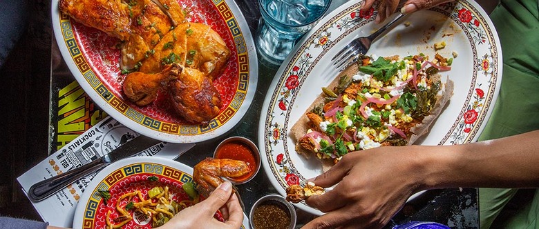 So it's no wonder then that the menu at Streetbird is fairly sprawling. There's the namesake rotisserie chicken ($5.50 to $14.50), of course, brined, steamed and spit-roasted to create a bird that's admirably crispy outside but juicy within (see Samuelsson's tips for cooking chicken). Then there's the Swediopian ($9.50), a nod to Samuelsson's own roots, which sees a half moon of the spongy, sour Ethiopian flatbread injera covered in doro wat, a deeply spiced chicken and onion stew, topped with fresh cheese and hard-boiled eggs. You'll think of it as a sort of floppy taco, until the Hot Splash ($8) arrives, made with a fermented teff and corn flour "tortilla" called tack tack (Swedish for "thank you") and piled high with hunks of piri piri-spiced catfish and avocado. It's what would happen if a fish taco vacationed in East Africa and never came back, and a pleasant respite from the chicken onslaught.