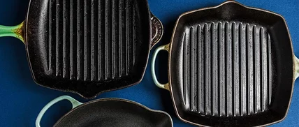 Cooking Surface: Cast-iron pans will either be preseasoned or coated with enamel. The seasoned interior will last longer, as it can be reseasoned and the patina will increase over time, but the enamel coating typically gives better release and is easier to clean. If choosing stainless, be aware that uncoated stainless grill pans are difficult to clean, as the oil often scorches onto the pan in the grooves between the ridges. In stainless or aluminum, opt for easy-to-clean nonstick coating instead, but be aware you might not get the pronounced, caramelized grill marks you're seeking.