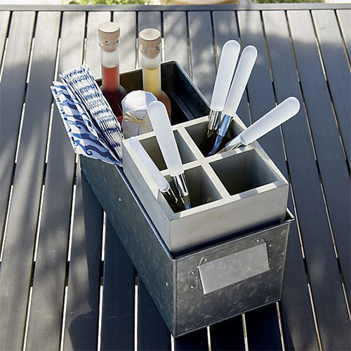 Moving the party to the patio results in a stupid amount of trips inside and out. Minimize the busy work (and maximize the lounging) by condensing all your utensils, condiments and napkins within an understated metal tray.