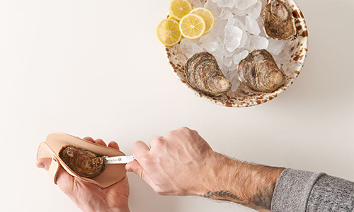 Nevermind the muscle power necessary to crack open one of those briny bivalves: Craggy shells are what really incite the shucking blues. Protect your hand with a handsome leather mitt made just for the task.