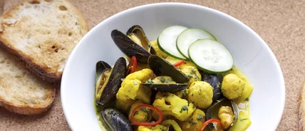 ② Main Course: Yellow Curry with Mussels and Chicken Meatballs