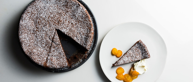 Take your chocolate cake up a notch with nutty chestnuts and a vibrant kumquat sauce.
