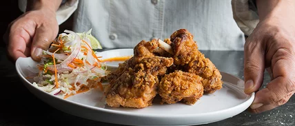 Chef Takashi Yagihashi douses his chicken in potato starch before frying it in duck fat, which doubles the poultry flavor and crackle factor. The sweet-and-spicy cabbage slaw brings even more crunch to the plate.