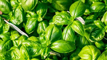 Herbal, sweet, and citrusy, Sweet basil is one of the most common basil varieties sold in the U.S. Sweet basil and Genovese are distinct types, although they're often used interchangeably. To know which you're getting, look at the nomenclature. The cultivar name for the former is Ocimum basilicum, but for the latter, it's named Ocimum basilicum 'Genovese Gigante.' In other words, Genovese is always a sweet basil, but Sweet basil isn't always a Genovese. Sweet basil leaves are bright green and roundish and can range in size from 2 to 3 inches long.