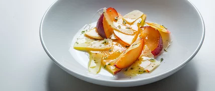 The Pairing: Shaved Smoked Black Pepper White Cheddar + Sliced Stone Fruit (nectarines, peaches, plums)