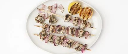 ① Main Course: Provençal Turkey Kebabs with Grilled Lemon