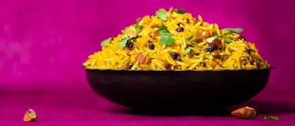 In a small bowl, dissolve a pinch of saffron into 2 tablespoons of warm water. Once dissolved, add it to a large bowl with 3 cups of warm, cooked rice (that's 1 cup uncooked), with 1 tablespoon of butter, a pinch of salt and ¾ cup of dried fruit. Toss to combine. Pile rice onto a plate and top with ½ to ¾ cup of chopped (or slivered) and toasted nuts, ? cup of chopped herbs and the zest of half an orange or lemon if you're feeling fancy. Serve immediately with wedges of lemon or orange.