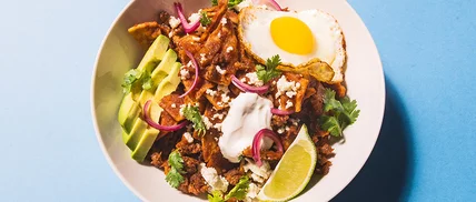 Pile on the toppings. This is where it gets really fun: Anything you can imagine putting on nachos, you can put on chilaquiles. Do like Empellón Cocina and pile salsa verde-drunken chips with black beans and shredded chicken, or pair a red sauce with salt-cured steak, à la NYC's Hecho en Dumbo. Our version has smoky chorizo, avocado and queso fresco, but you can get creative with leftovers and dice up the half onion roaming in your vegetable crisper, smash the forgotten garlic clove lying lonely on your counter and finish with that half-used bag of shredded mozzarella. Our only hard-and-fast rule is that you should always top chilaquiles with a fried egg, because, well, everything tastes better with a fried egg on top.